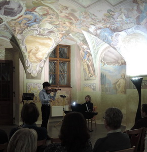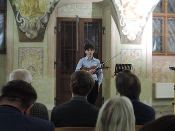 Rozohrávka mimoriadne talentovanej dievčiny z Brna. Exkluzívna sála Stojanovho gymnázia so svojou výzdobou. Joří Pospíchal dirigent, huslista a vynikajúci interpret. Jeden z jeho žiakov. Šopstakovicove skladby tvorili dominantu tejto dvojice. Konzervatórium v Brne, má svojich talentovaných žiakov. Mladý Matúš Pospíchal pred svojim vynikajúcim výkonom. Je nám iba ľúto, že na Slovensku zaostávame aj v tomto obore Záverečné foto.