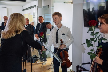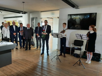 Významní hostia vrátane exprezidentky p. Čaputovej. Husľový virtuóz p. Imrich Farkaš s p. Varhaníkovou Prítomní predstavitelia katolíckej cirkvi. Otvorenie výstavy Munkovcov. Klaňačky po úspešnom vystúpení. Spoločné foto účinkujúcich. Ešte jeden hudobný prídavok. mladá huslistka Katarína Všetečková prijíma gratuláciu P. exprezidentka blahoželá reprezentantom Nitry Vatikánsky nuncius Mons. Girasoli vyjadril poďakovanie Výstava o rodine Munkovcov so svojim tragickým príbehom.