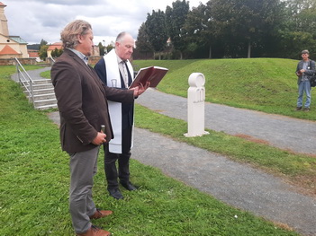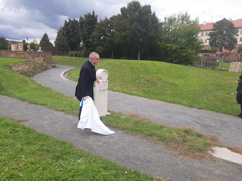 Privítanie prítomných p. hejtmanom R. Holišom. Starosta Velehradu p. Aleš Mergental. Vynikajúci prejav starostu Modré p. M. Kovaříka. Úžasný výkon zboru gymn. A. Stojana Velehrad. Vdp. Čunek pri sarkofágu v Bazilike Velehrad Pan radní Ivan Láska pri odhaľovaní kameňa CMS Tvorci kamenného symbolu CMS. Požehnanie kameňa a úžasný prejav Vdp. Čunka Záverečné foto s perspektívou rozvoja CMS.
